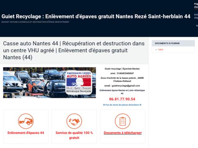 Informations pratiques pour: Guiet recyclage : Rachat voiture Nantes et Enlèvement d'épaves