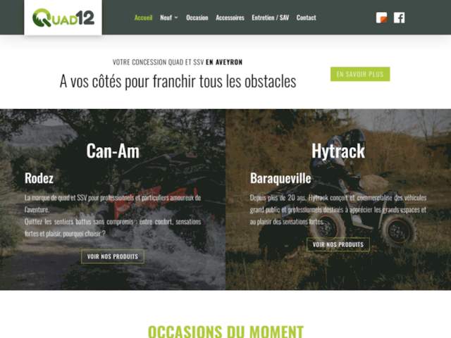 Découvrez **Quad 12**, le concessionnaire QUAD de référence situé à Rodez et Baraqueville, spécialisé dans la vente et l'entretien de véhicules tout-terrain. Que vous soyez amateur d'aventure ou professionnel cherchant à explorer les grands espaces, notre concession QUAD vous propose une large gamme de quads et SSV de marques prestigieuses telles que Can-Am et Hytrack. Depuis plus de 20 ans, nous mettons notre expertise au service de nos clients pour leur offrir des véhicules performants, robustes et adaptés à toutes les utilisations, qu'elles soient loisirs ou professionnelles.
