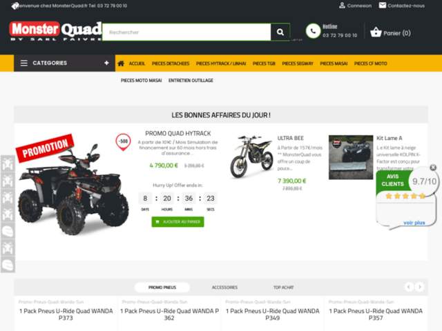 Chez MonsterQuad, nous mettons un point d'honneur à offrir un service complet, incluant des solutions de financement personnalisées. Par exemple, vous pouvez bénéficier d'une simulation de paiement à partir de 73€ ou 48€ par mois, selon la durée de financement choisie, sans oublier nos offres spéciales en période de promotion ou de Black Friday. N'hésitez pas à consulter nos conditions d’utilisation pour toute inscription ou demande d’informations supplémentaires.