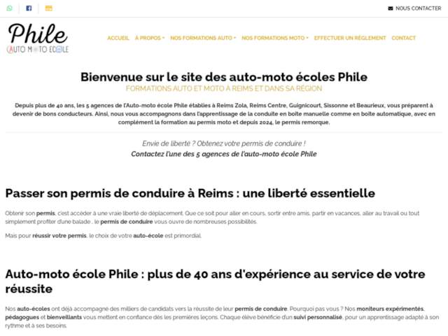 Depuis plus de 40 ans, Auto-Moto école Phile, établissement reconnu pour sa qualité d’enseignement, dispose de 5 agences stratégiquement situées à Reims Zola, Reims Centre, Guignicourt, Sissonne et Beaurieux. Notre mission est de vous préparer à devenir de bons conducteurs, en vous offrant un accompagnement professionnel et personnalisé. Que vous souhaitiez apprendre à conduire en boîte manuelle ou en boîte automatique, notre équipe met tout en œuvre pour vous garantir une formation efficace et adaptée à vos besoins. Nous proposons également des formations complémentaires pour l’obtention du permis moto, permettant aux futurs motards de maîtriser leur conduite en toute sécurité. Depuis 2024, l’Auto-Moto école Phile propose également la formation au permis remorque, répondant aux besoins d’un public élargi souhaitant tirer parti de cette habilitation supplémentaire. Notre établissement s’engage à vous accompagner tout au long de votre processus d’apprentissage, en vous offrant des véhicules récents, renouvelés tous les deux ans, pour garantir un confort optimal et une expérience de conduite en parfait état. Nos moniteurs expérimentés, pédagogues et bienveillants, créent une atmosphère de confiance dès les premières leçons, afin que vous progressiez à votre rythme. Choisir Auto-Moto école Phile, c’est assurer votre réussite grâce à une formation de qualité, adaptée et encadrée par des professionnels passionnés. Découvrez dès maintenant nos différentes formations et concrétisez votre projet de permis dans l’une de nos agences. Toute notre équipe reste à votre disposition pour répondre à vos questions et vous aider à débuter votre parcours de conducteur de manière sereine et efficace.