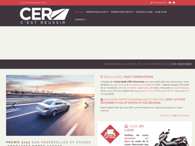 Bienvenue à l'Auto-Moto école CER Vincennes, où nous nous engageons à vous offrir une formation de qualité pour l'obtention de vos permis de conduire. Située au cœur de Vincennes, notre équipe professionnelle est à votre disposition pour vous préparer au permis B, ainsi qu'à la conduite accompagnée (AAC - Apprentissage Anticipé de la Conduite) et à la conduite supervisée. Que vous optiez pour une boîte manuelle ou automatique, nous avons des solutions adaptées à votre rythme et à vos besoins.