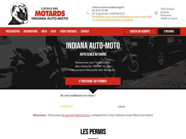 Retrouvez plus d'informations sur le site Auto Moto Ecole Indiana , appartenant à la catégorie : Motos Écoles Normandie