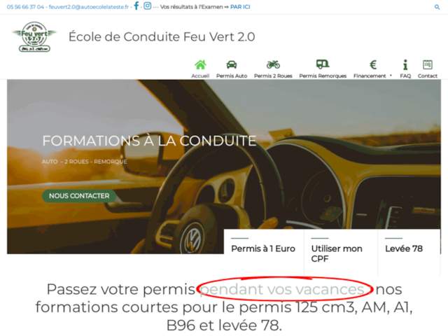 À La Teste-de-Buch, l'Auto-Moto école Feu Vert 2.0 est une institution reconnue, héritière d'une riche histoire commencée en mai 1968 sous le nom d'Auto-Moto école Feu Vert. Avec un esprit de famille préservé, cette école offre aux nouvelles générations de futurs conducteurs une formation rigoureuse et personnalisée, adaptée à leurs besoins spécifiques tout en élargissant constamment l'éventail de formations proposées.