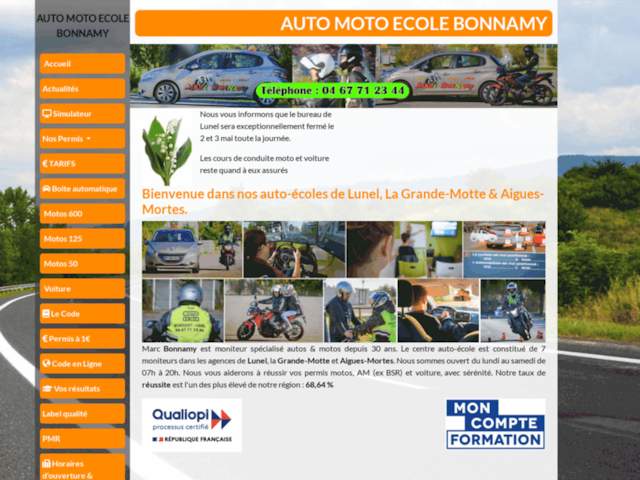 Note importante : le bureau de Lunel sera exceptionnellement fermé le 2 et 3 mai toute la journée, mais les cours de conduite en voiture et moto seront maintenus pour assurer votre progression sans interruption. Faites confiance à Auto-Moto école Marc Bonnamy pour concrétiser vos projets de permis de conduire dans un environnement convivial et professionnel.
