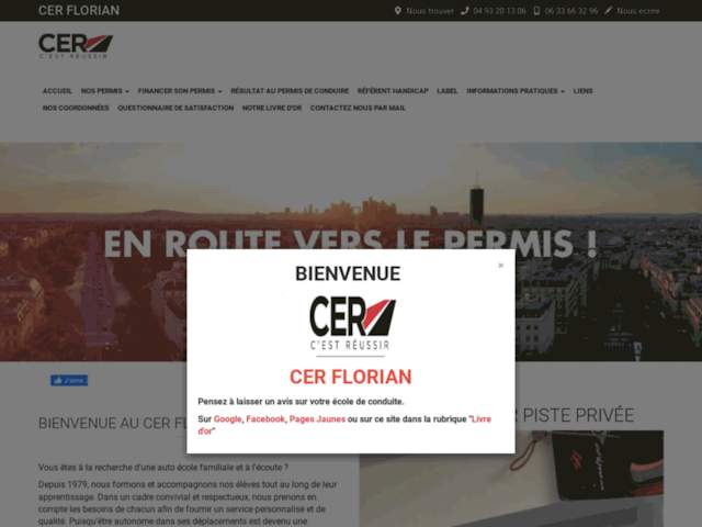 Pour ceux qui souhaitent se perfectionner ou préparer un permis spécifique, notre auto-ecole propose aussi des cours de perfectionnement et des formations avancées comme la conduite supervisée. N'hésitez pas à nous contacter pour toute demande d’informations, ou à laisser un avis sur Google, Facebook ou Pages Jaunes afin de partager votre expérience. Chez CER Florian, notre priorité est de vous accompagner vers l’autonomie sur la route dans un cadre convivial et professionnel.